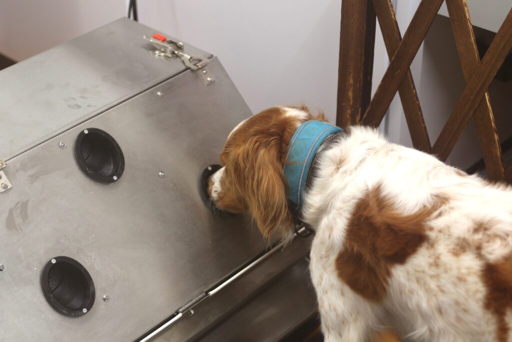 Die Detection-Dogs-Training-System (DDTS) ist ein hochmodernes, elektronisches Ausbildungstool zur gezielten Schulung von Spürhunden – vollkommen frei von unbewussten Einflüssen des Hundeführers.